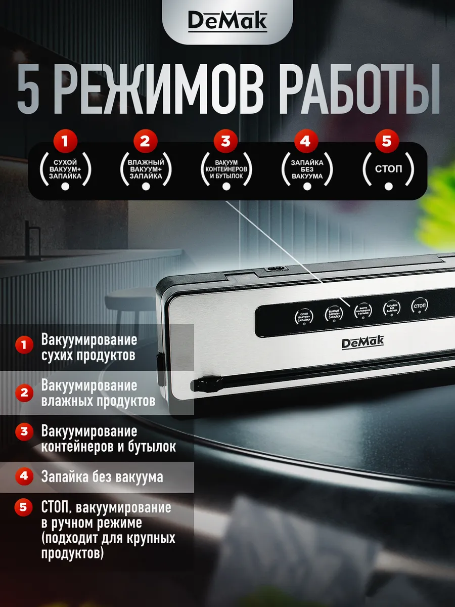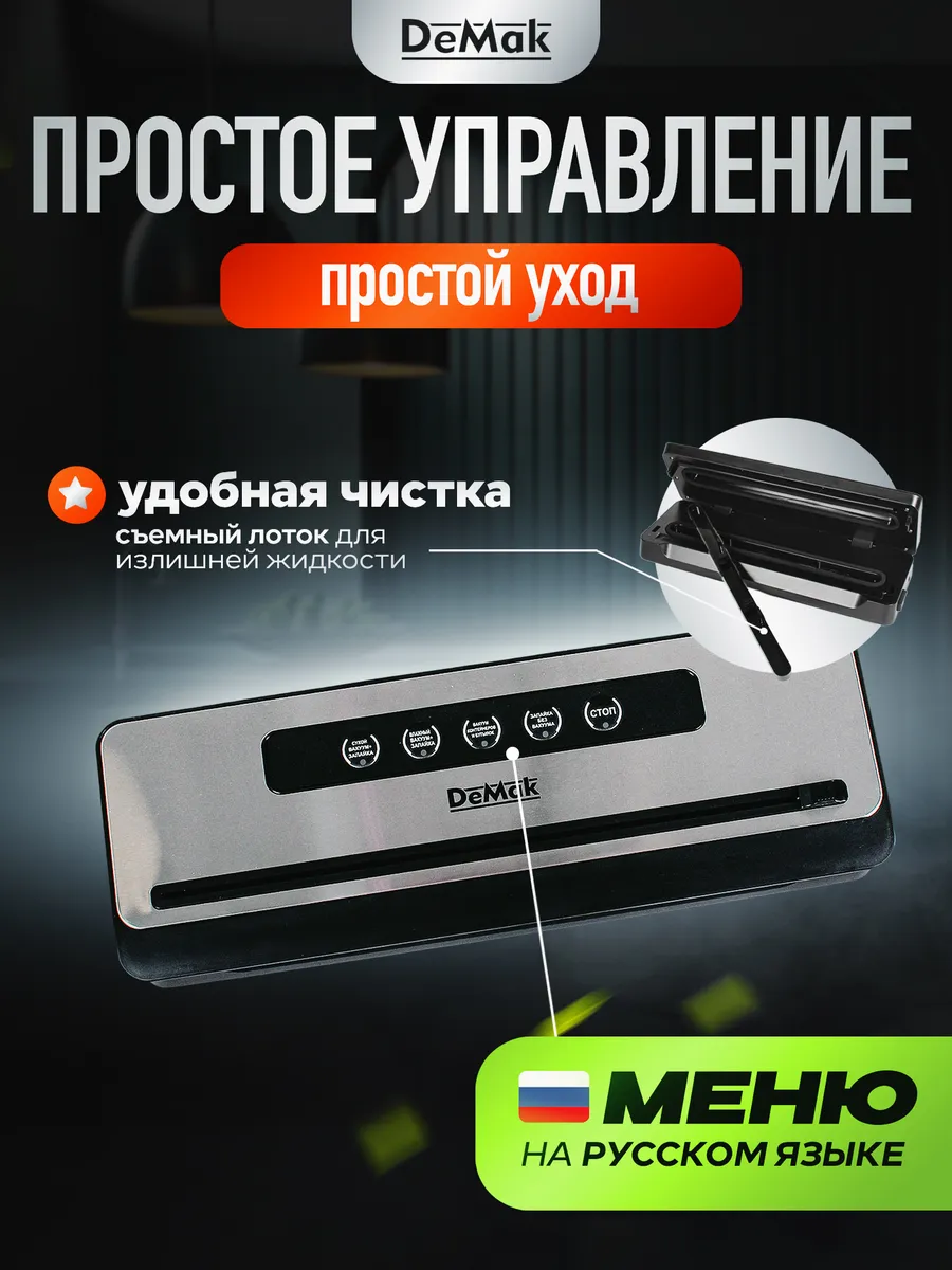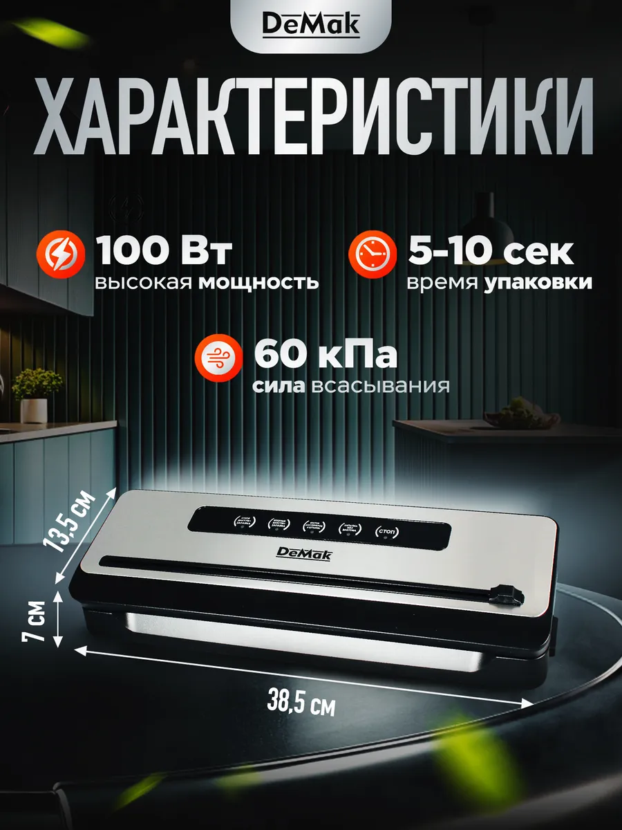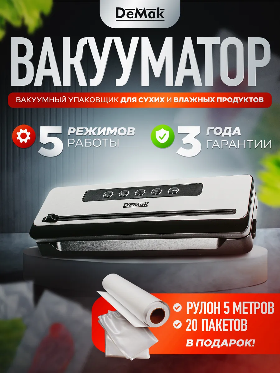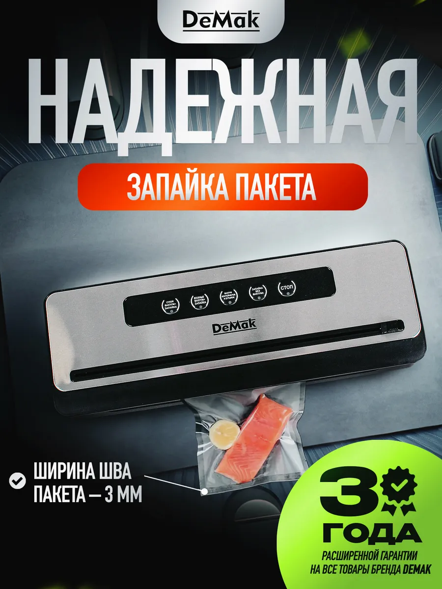 Общие характеристики Модель - Вакууматор для продуктов ДеМак Гарантийный срок - 3 года