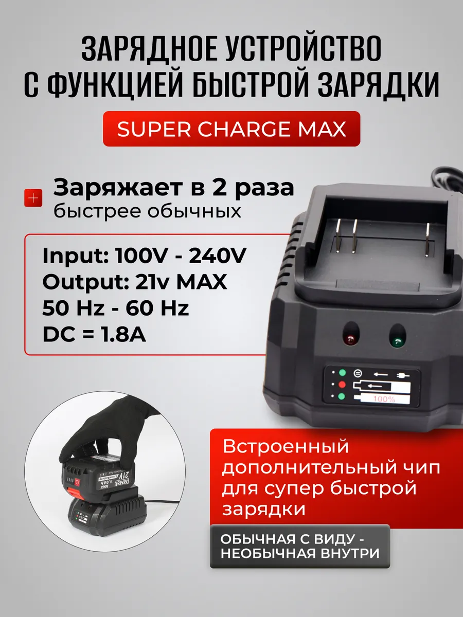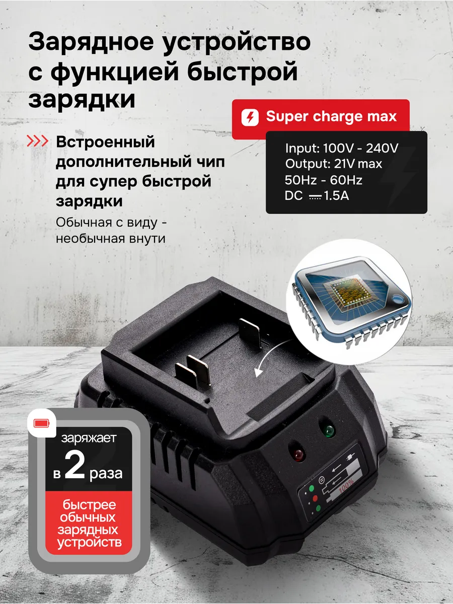 Питание Напряжение - 21 В Тип аккумулятора - Li-Ion Емкость аккумулятора - 4000 мА*ч