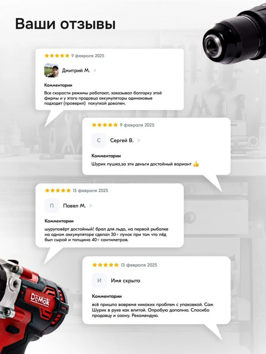 Шуруповерт — это подарок для мужа, подарок для отца. Купите и получите ударный шуруповерт с гарантией 3 года. Мы на связи @zabota_demak_bot