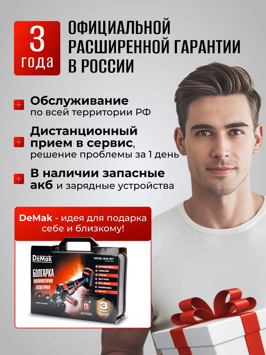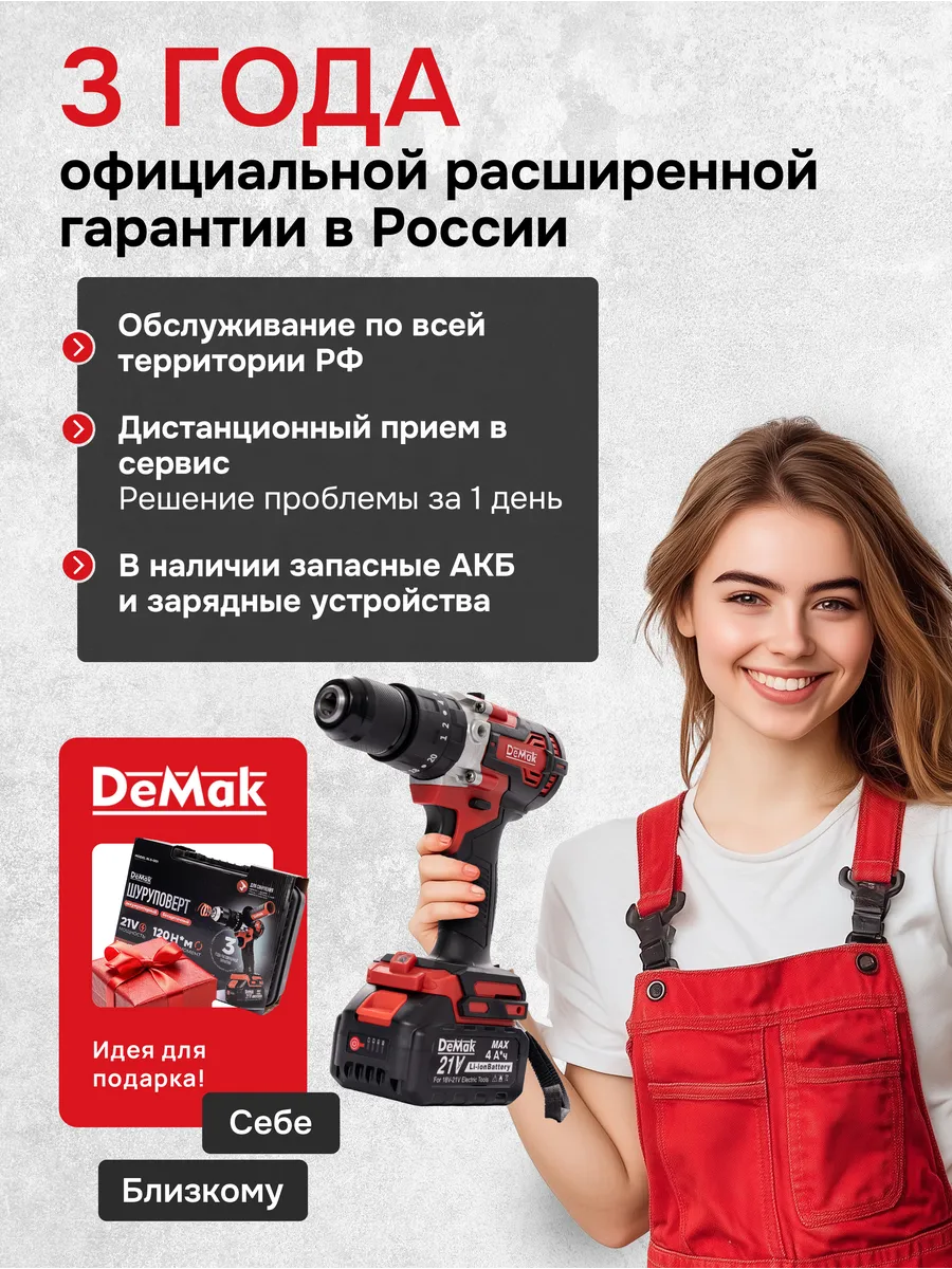 Мы гарантируем вам сервисное обслуживание через нашу Службу заботы @zabota_demak_bot и расширенную гарантию на 3 года.