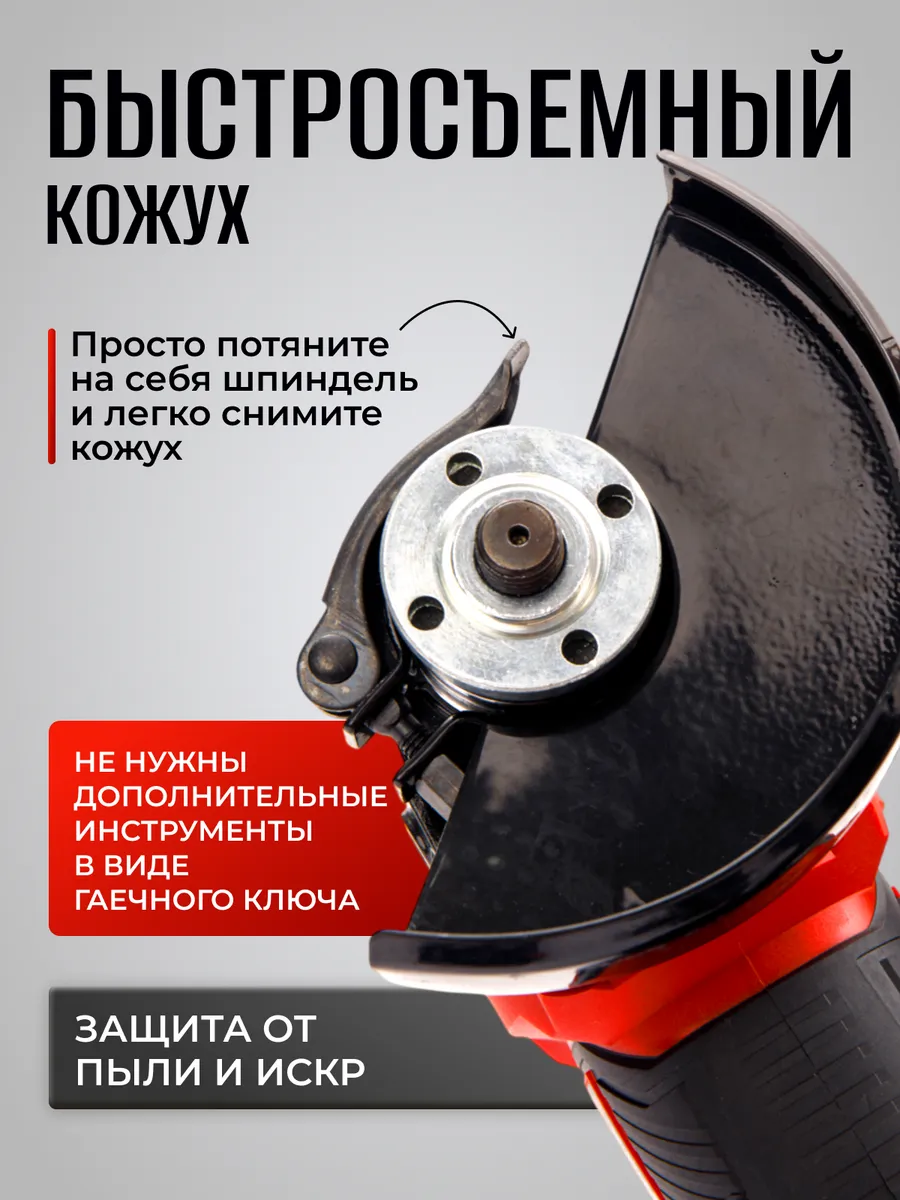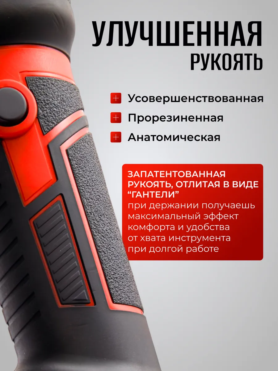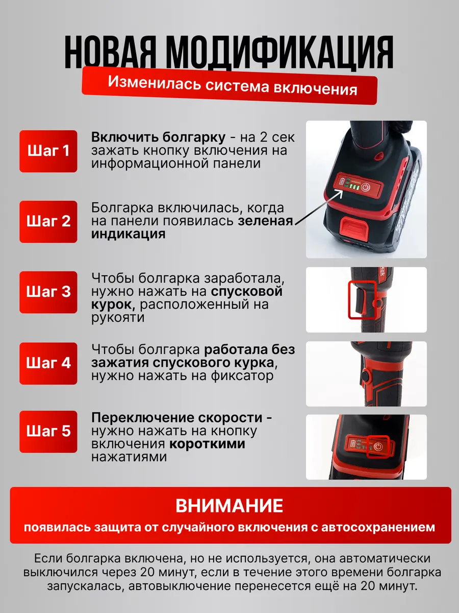 Углошлифовальная машина с регулировкой оборотов способна проработать рекордное количество времени на одном аккумуляторе. На нижней части беспроводной шлифмашины находится панель управления, на которой можно регулировать скорость работы.