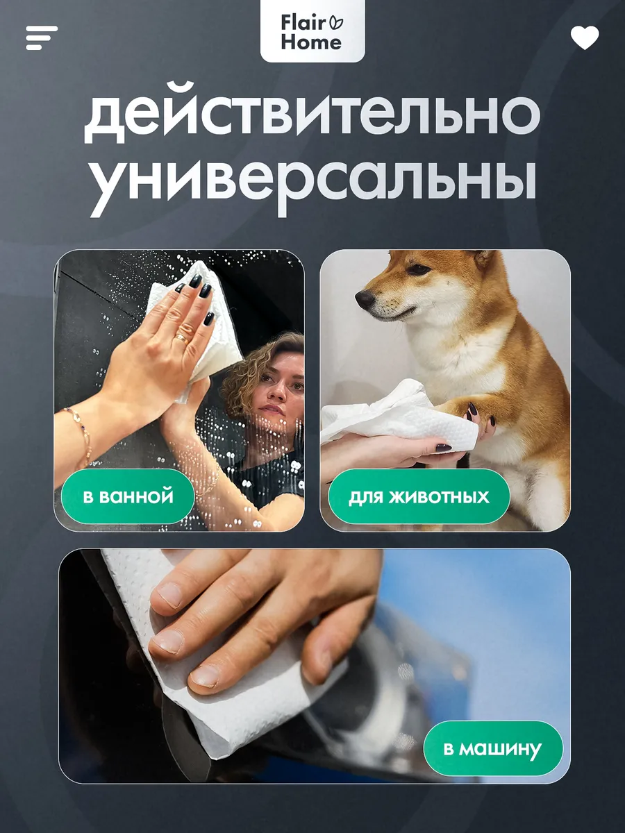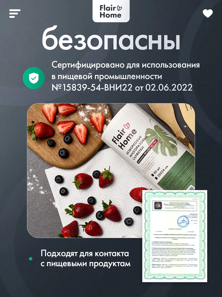 Умные салфетки подходят не только для чистки и уборки, их можно использовать как многоразовые полотенца в рулоне, взять с собой на отдых, протирать оргтехнику и компьютеры, использовать в гараже и автомобиле, в косметологии или использовать как салфетки для маникюра. Попробуйте хранить зелень в холодильнике во влажной салфетке, она пролежит дольше. Ей так же удобно убрать лишнюю влагу с рыбы, овощей или посуды. Все сертификаты, разрешающие использовать салфетку в пищевой промышленности присутствуют.