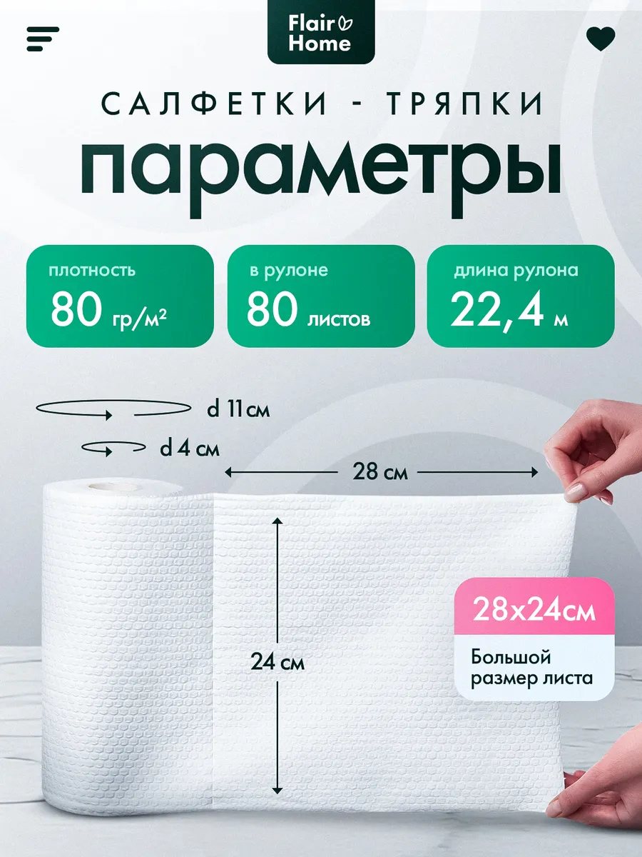 Описание Салфетки для уборки в рулоне - это новый помощник для дома. Удобная и многофункциональная салфетка имеет оптимальный размер и ощутимую плотность, сравнимую с полотенцем. Объемная текстура и безворсовая технология позволяет быстрее впитывать влагу, не оставлять разводов и мелких ворсинок, что делает её незаменимой тряпкой для чистки стекол без разводов, зеркал и других глянцевых поверхностей.