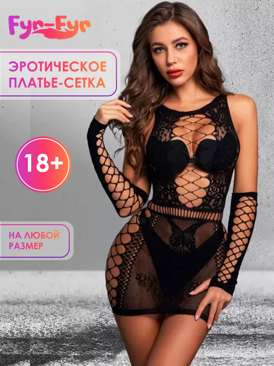 Дополнительная информация Декоративные элементы - кружево; большие размеры; без размера Вид застежки - без застежки Параметры модели на фото (ОГ-ОТ-ОБ) - 90-60-60 Рост модели на фото - 170 см Страна производства - Китай Особенности белья - наряд для эротических игр Комплектация - платье-сетка эротик -1шт; перчатки-сетка эротик -1пара; интимные товары для взрослых 18 +