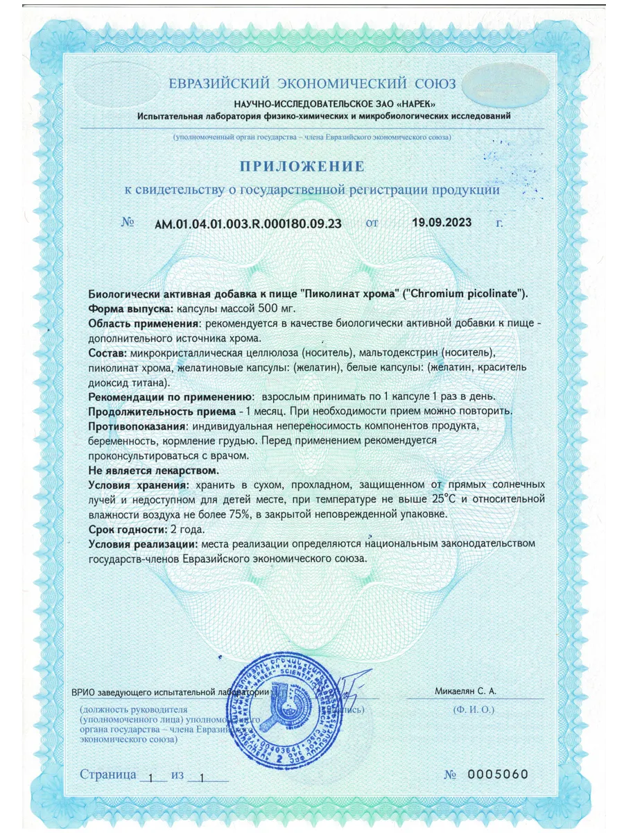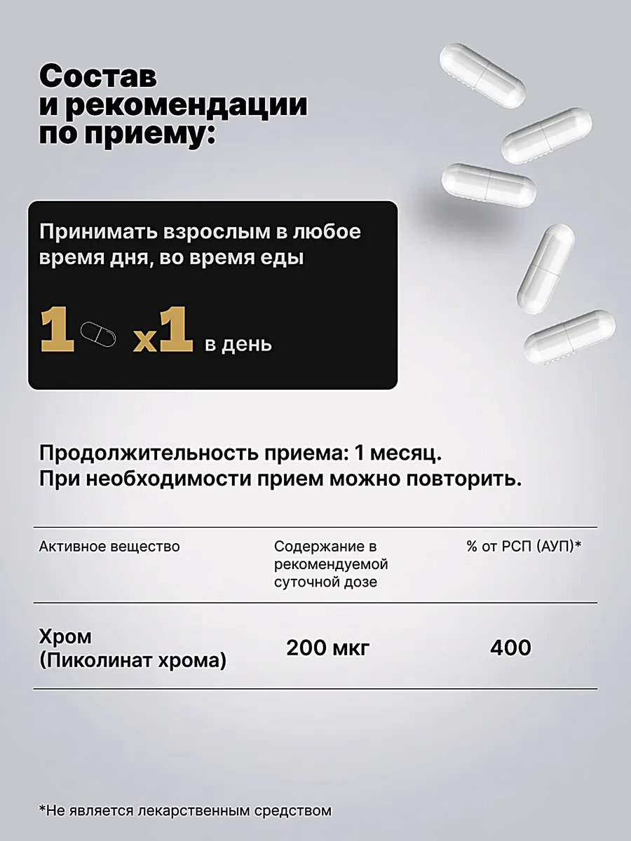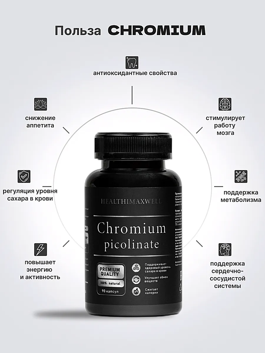 Основная информация Состав - пиколинат хрома, мальтодекстрин, желатиновые капсулы