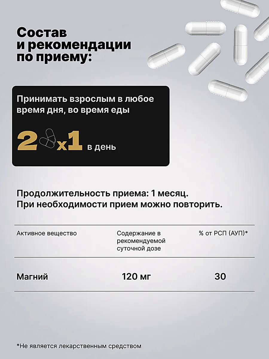 Основная информация Состав - магния бисглицинат, мальтодекстрин, желатиновые капсулы (желатин)