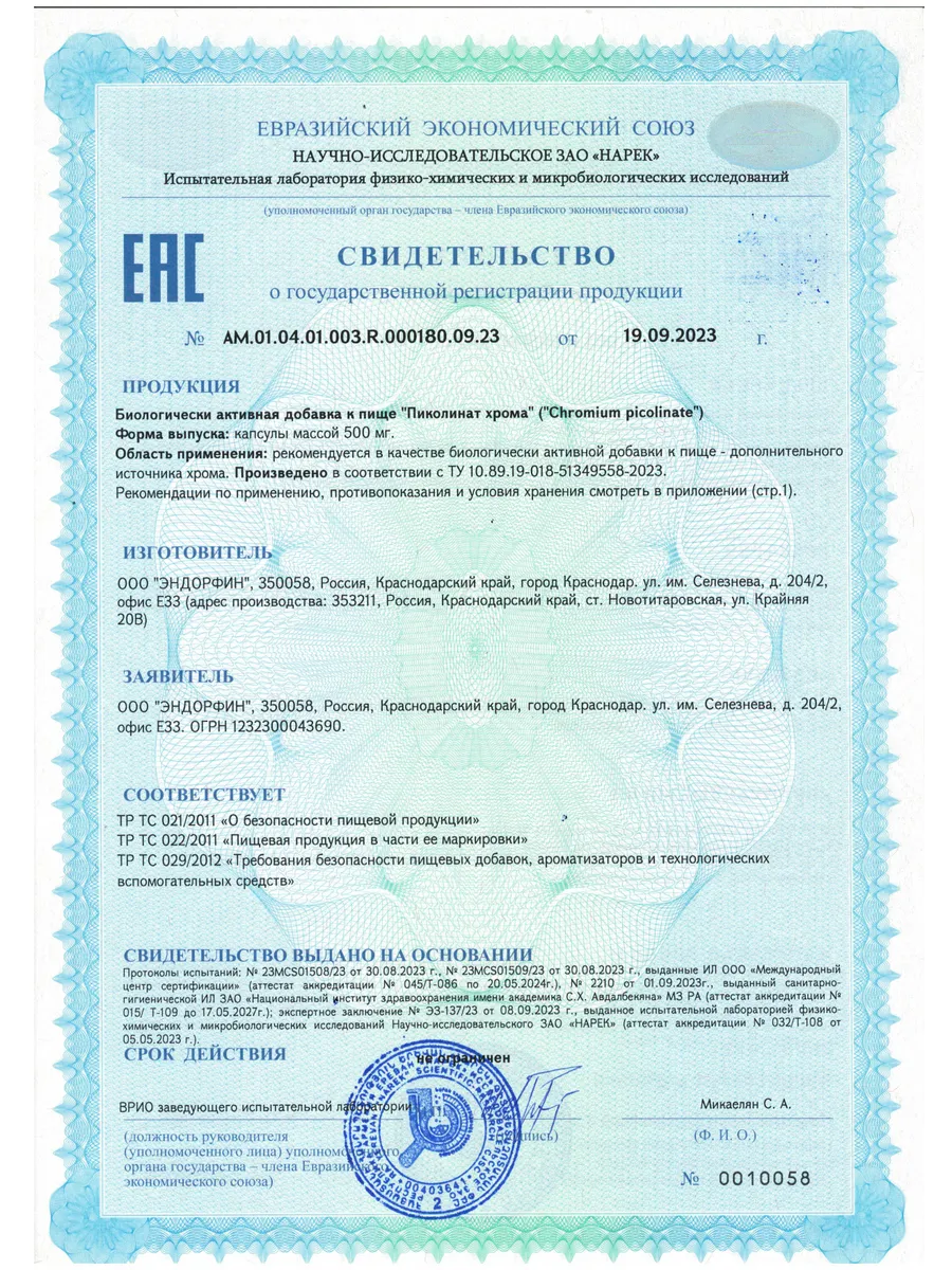 Документы Свидетельство о регистрации СГР AM.01.04.01.003.R.000180.09.23