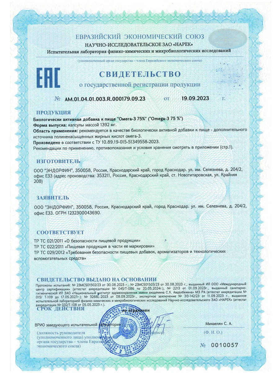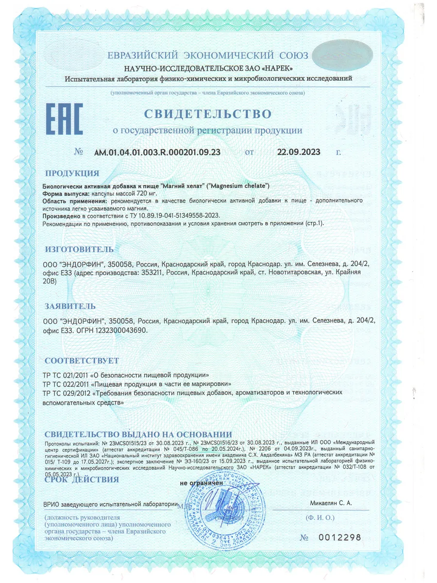 Документы Свидетельство о регистрации - AM.01.04.01.003.R.000201.09.23