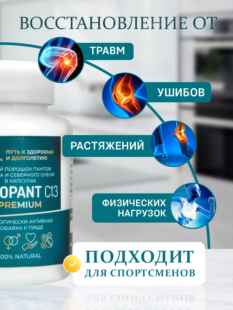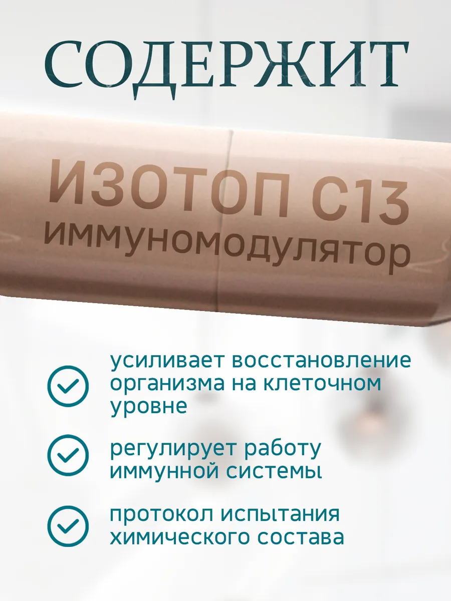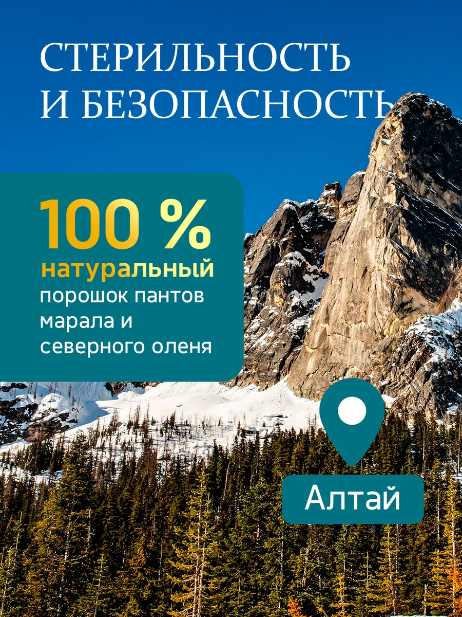 Этот инновационный комплекс создан на основе ценных пантов марала с добавлением изотопа С13 и содержит 11 витаминов (A, B1-B9, B12, C, E и другие), а также 20 аминокислот