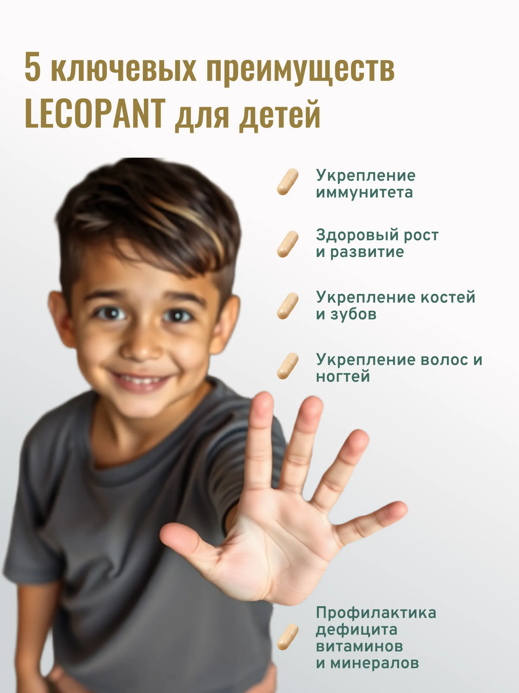 Здоровый рост и развитие: LECOPANT обеспечивает организм ребенка всеми необходимыми витаминами и минералами, способствуя правильному росту и развитию.