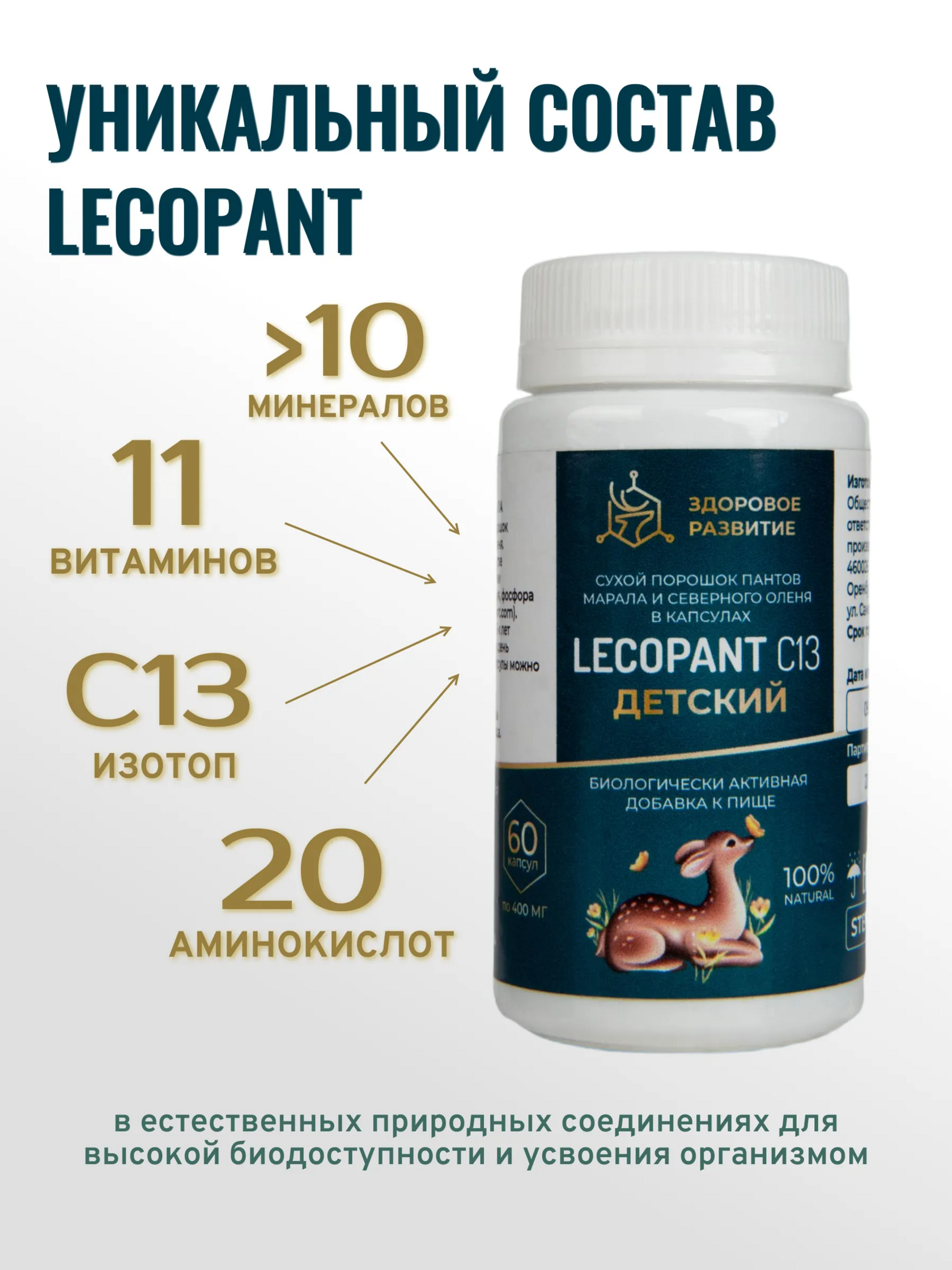 Уникальный состав LECOPANT для детей включает в себя 11 витаминов, 20 аминокислот и целый ряд минералов, таких как кальций, фосфор, железо, магний, хром, цинк, кремний, йод, бор, молибден и селен. Все эти вещества находятся в естественных природных соединениях, что обеспечивает их высокую биодоступность и усвоение организмом.