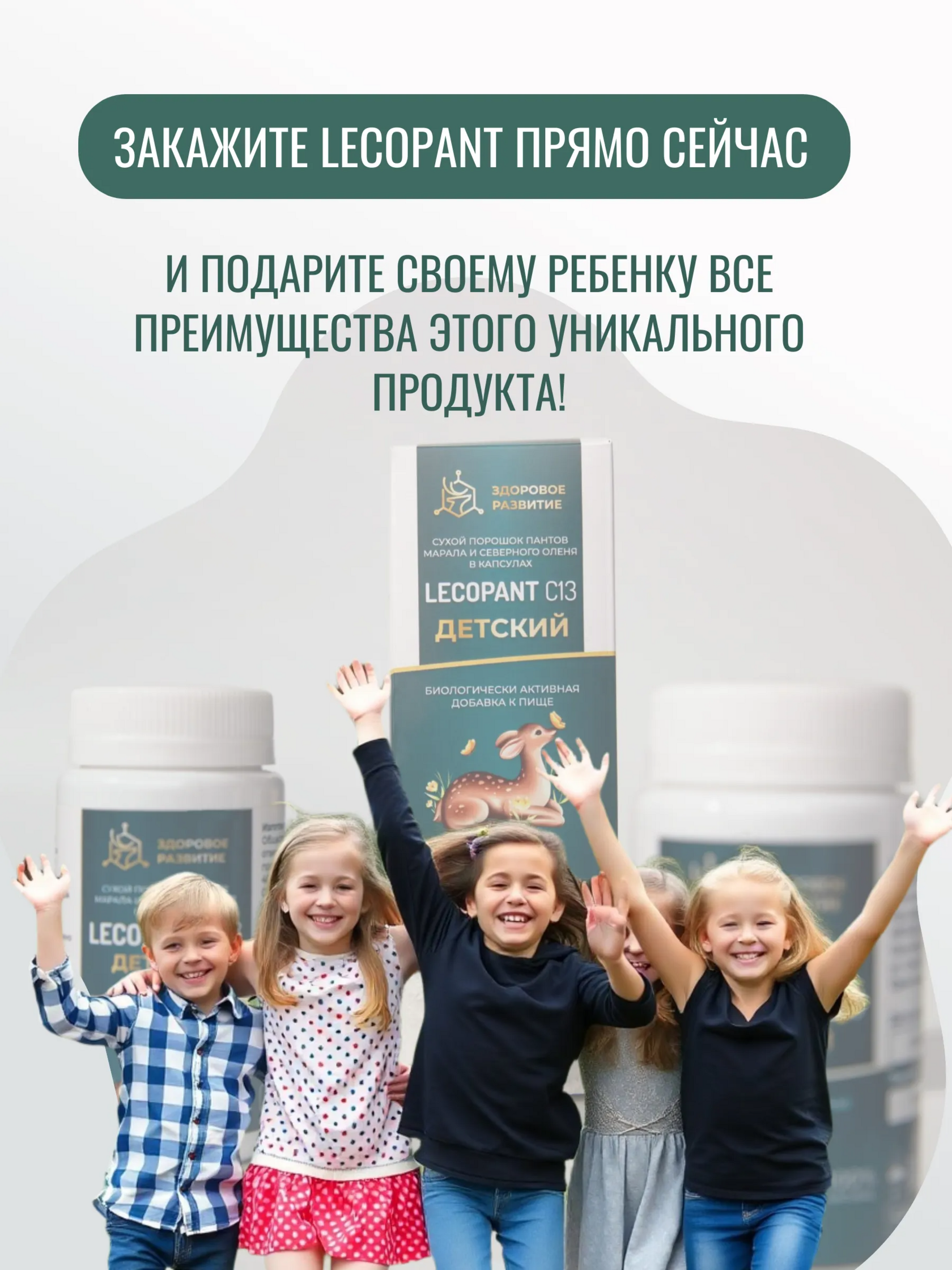 Описание Представляем вашему вниманию уникальный продукт LECOPANT - порошок пантов марала, специально разработанный для детей. Этот инновационный БАД содержит богатый комплекс витаминов, минералов и аминокислот, которые помогут вашему ребенку расти здоровым и крепким.