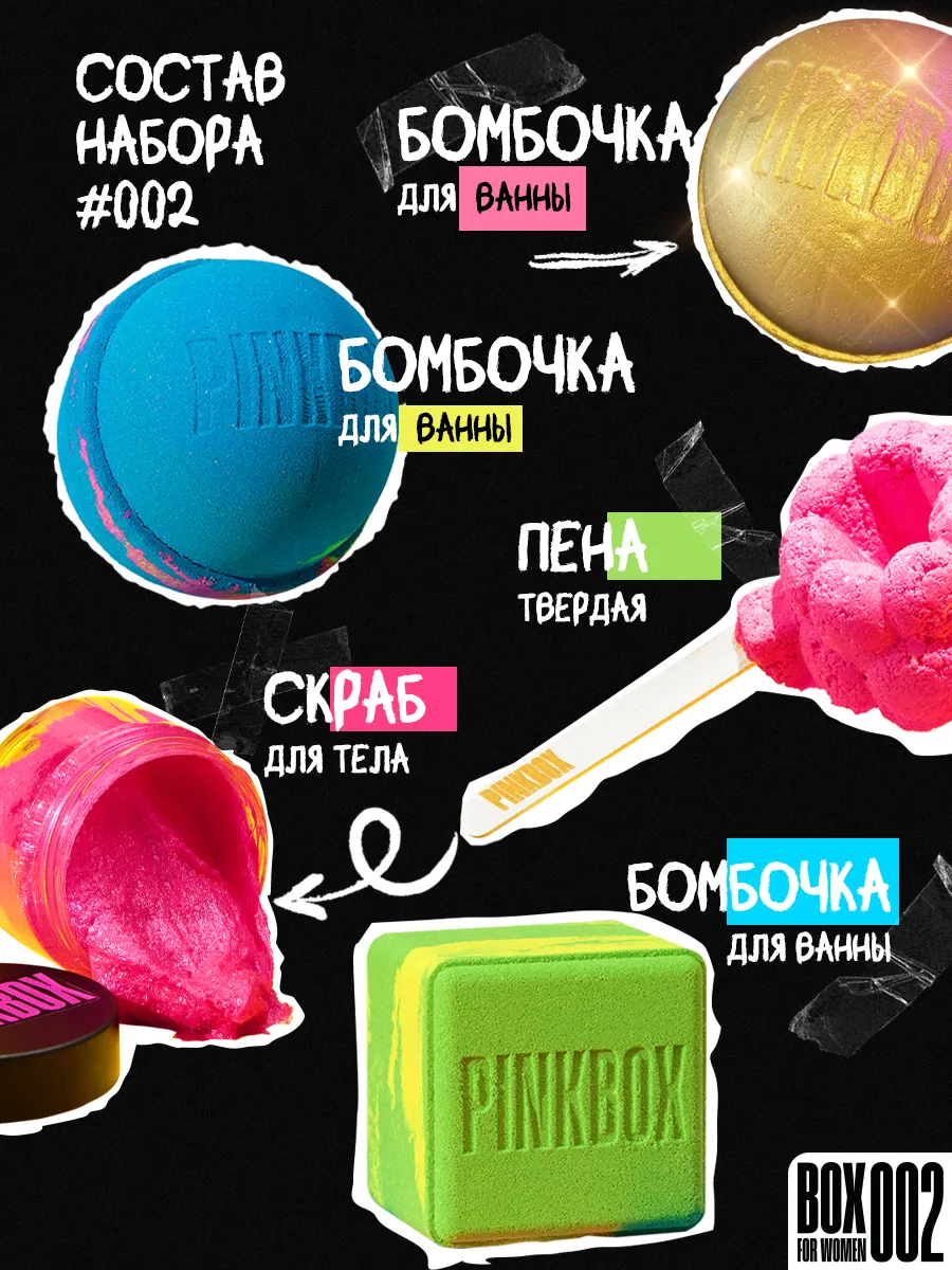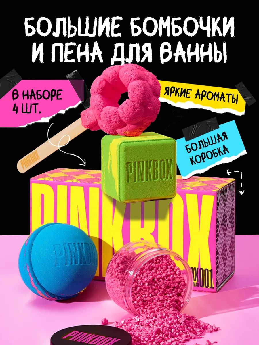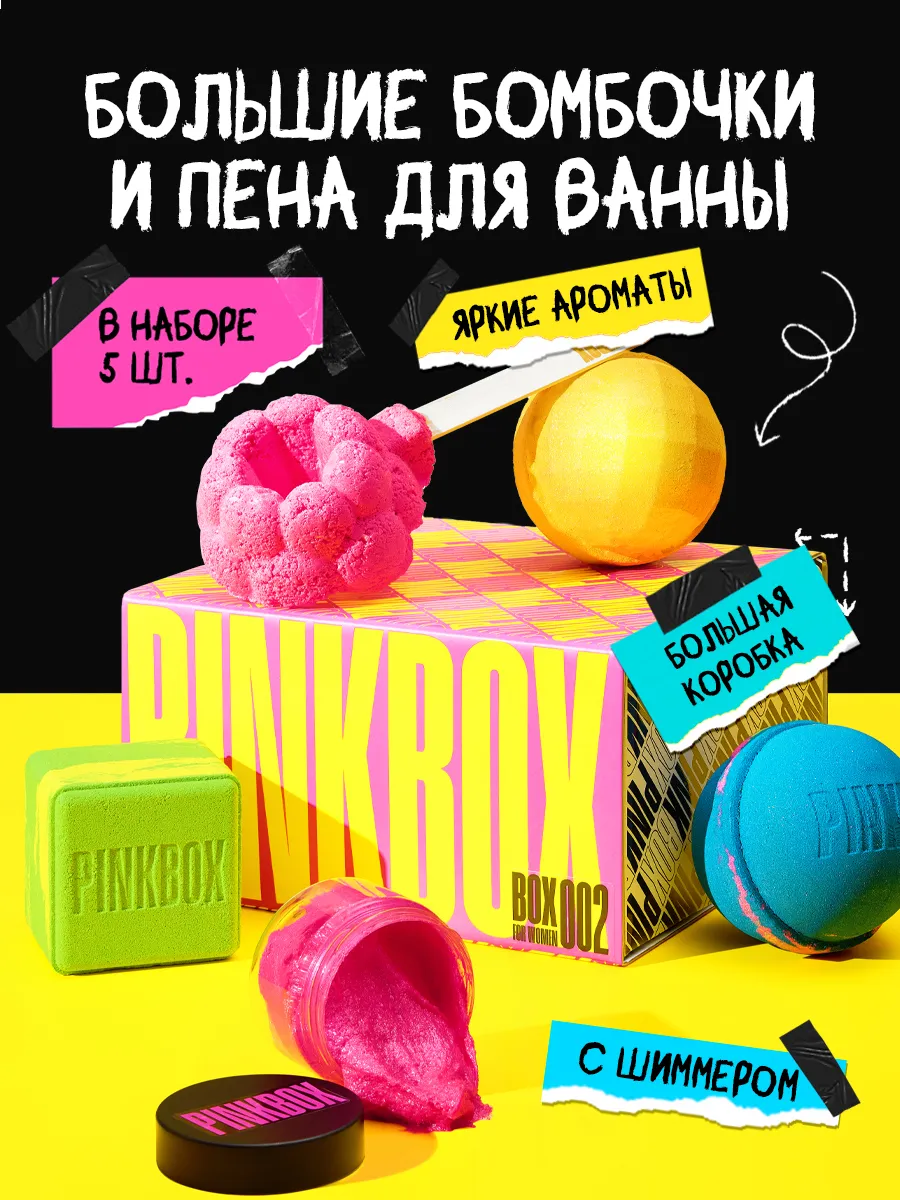 Каждый элемент набора создан с заботой о вашем комфорте и удовольствии. Подарите себе или своим близким незабываемые моменты расслабления и радости с набором бомбочек от PINKBOX!