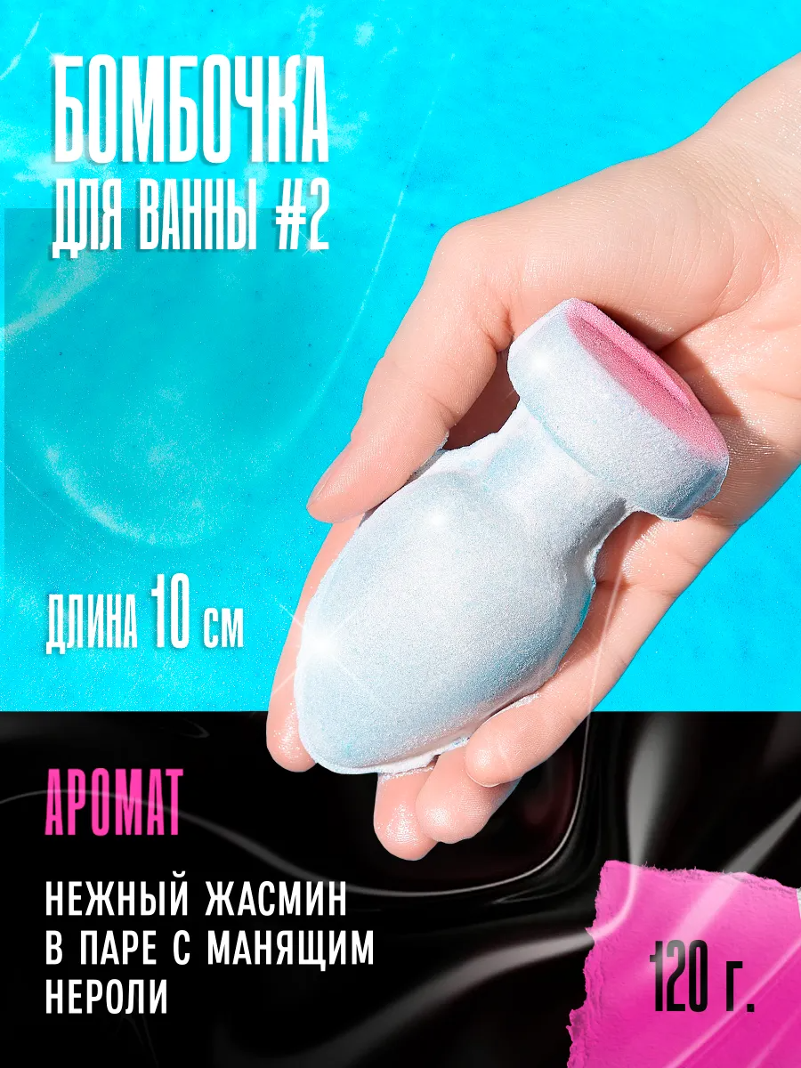 2. Бомба для купания в форме анальной пробки 110 г Состав, включающий морскую соль и масло виноградных косточек, обеспечит вам не только приятный аромат, но и ухаживающий эффект. Растворите её в теплой воде и позвольте себе погрузиться в мир комфорта и уюта.