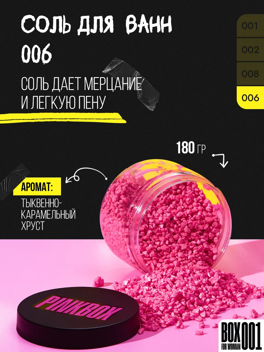Описание Набор ароматических бурлящих бомбочек с пеной и солью для ванны от бренда PINKBOX это яркий и красочный box косметики для безопасного купания и очищения кожи. Бомбочки с шиммером и с эфирными маслами профессиональной косметики подарочный набор для женщин для расслабляющих и релакс процедур. Средства для тела с ароматами от свежих цитрусовых нот до сладких цветочных аккордов создают удовольствие. Бомбочки привносят в воду красивые цвета, создавая атмосферу уюта и спокойствия, что делает процесс мойки более приятным. Подарочный бокс с бурлящими шарами с пеной обеспечивает очищение кожи от отмерших клеток кожи, нормализацию pH-баланса, увлажнение, дезодорирование тонизирование и освежение кожи тела рук ног. Бурлящий шар с солью пеной для ванной с шиммером SPA-уход за кожей прямо у вас дома. Каждая шипучка, добавленная в ванну, превращает обычное купание в волшебное путешествие. Внутри вашего spa бокса вы найдете настоящий оазис для расслабления и ухода за собой. Две ароматные бомбы для ванны каждая из них обладает уникальным растворением, которое наполняет вашу ванну насыщенным и сочным ароматом. Погрузитесь в мир ароматерапии и позвольте себе забыть о повседневной суете. Твердая пена для ванны на палочке это волшебный аксессуар, который превратит ванну в настоящий спа-салон. Просто подержите палочку под струей воды, и густая пена окутывает вас, создавая атмосферу уюта и расслабления. А благодаря своей формуле, она также позволяет создавать большие мыльные пузыри, что добавляет элемент игры и веселья. Натуральная морская соль для ванны это настоящий эликсир для здоровья и чистоты вашей кожи. Она придаёт как пену, так и мерцание воде блестками. Погрузитесь в её целебные свойства и насладитесь моментом. Бокс для душа и ванной создан, чтобы дарить яркие эмоции и наслаждение, позволяя каждой женщине ощутить себя королевой в собственном доме. Такой набор станет отличным сюрпризом на день рождения, позволяя имениннику насладиться моментами заботы