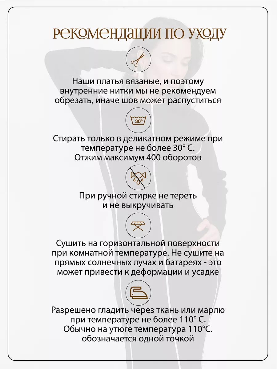 Дополнительная информация Размер на модели - one size 42-48 Рост модели на фото - 171 см Параметры модели на фото (ОГ-ОТ-ОБ) - 80-60-90 Материал подкладки - без подкладки Вид застежки - без застежки Тип карманов - без карманов Покрой - облегающий Вырез горловины - круглый Декоративные элементы - хлястик Уход за вещами - стирка при t не более 30°C Комплектация - платье Страна производства - Россия